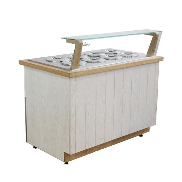 - statické chlazení, maximální teplota okolí +30 °C a vlhkost 55 %, nerezová vrchní deska, skleněná nástavba, válcové gastronádoby s víkem - ⌀ 20 cm (objem nádoby - 7,3 l), možnost individuálního opláštění, zařízení vhodné k zabudování